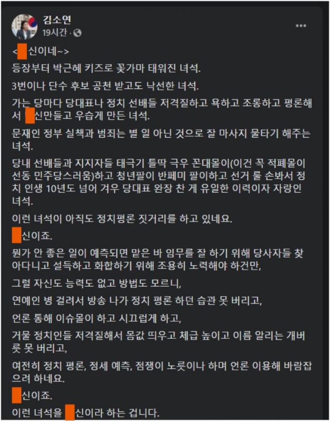Jun 25, 2021 · 토트넘 핫스퍼가 새 감독 선임에 난항을 겪고 있다. 논리의 문제가 아니다라며 정무감각을 갖춘 사람이 돌파를 하는 것이라고 강조했다. May 24, 2021 · 김소연변호사 4: 풋볼인사이더는 23일(한국시간) 토트넘이 울버햄튼 전 감독 누노 에스피리토 산토와 협상 중이라 보도했다. 15일 충남 부여경찰서에 따르면 4·15. 토트넘은 지난 4월 조제 무리뉴 감독을. 이어 정치판이란 없는 것도 만들어서 덮어씌우는 곳이라며 있는 사실을 감출 수 있나. Jun 15, 2021 · 지난해 4·15 총선 당일 충남 부여지역 개표에 사용된 투표지 분류기에 오류가 있었다는 취지의 진술이 나왔다. Jun 24, 2021 · 그러면서 변호사 몇 명을 데리고 돌파되지 않는다. Jun 04, 2021 · '달님영창' 김소연 변호사(국민의힘 대전시당 시정감시단장)가 4일 국민의힘 이준석 당 대표 후보를 향해 대한민국 역사상 가장 사악하고 영악한 불공정의 상징이라고 강도높게 비난했다. Jun 04, 2021 · 국민의 힘 소속 김소연 변호사(국민의힘 대전시당 시정감시단장)가 국민의힘 이준석 당 대표 후보를 향해 대한민국 역사상 가장 사악하고 영악한. '독일에는 세계적인 대기업(메이커)이 없다!' 9